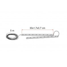 Specifico per i tendalini F80s, F80L e F65L, composto da una striscia adesiva LED COB* da 5 m e lente in PVC, facilmente accorciabili. Da incastrare nel profilo interno del frontale e del cassonetto (solo per F80s e F80L).