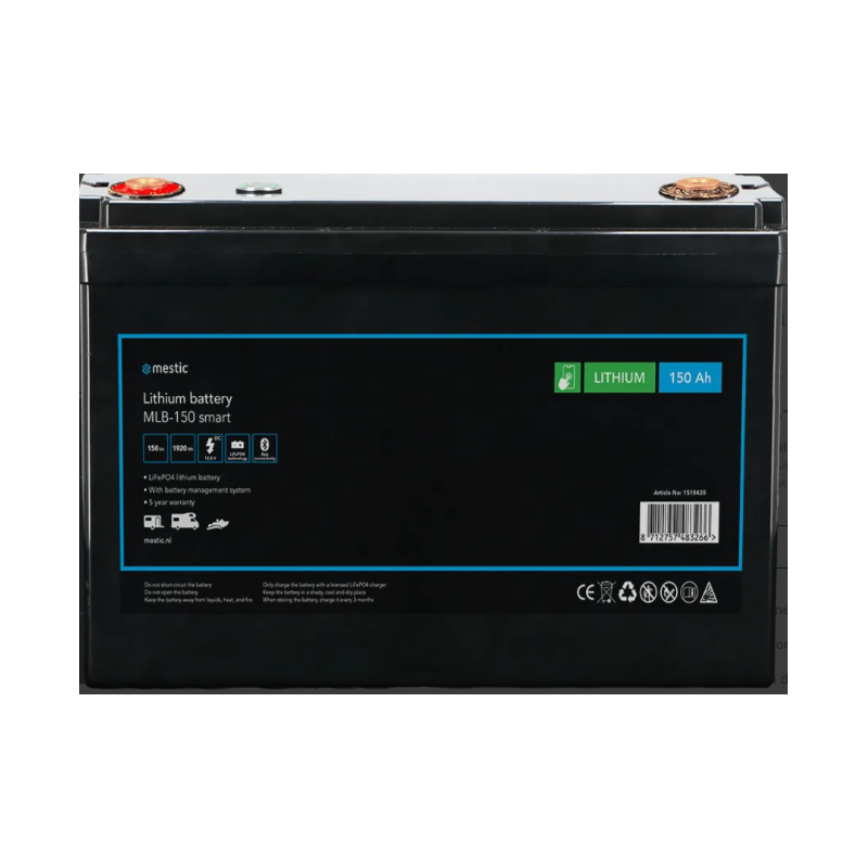 Utilizzate la batteria al litio Mestic MLB-150 smart come batteria di bordo, per il vostro caravan mover o per caricare le vostre attrezzature elettroniche da campeggio. Le batterie al litio sono dotate di un sistema di gestione della batteria che ne regola tutte le funzioni vitali. Questo le rende estremamente sicure e protette, tra l'altro, da sovraccarichi e scariche. La batteria al litio Mestic MLB-150 smart ha una capacità di 150 Ah. Un vantaggio delle batterie al litio è la loro bassa resistenza interna. Ciò consente alla batteria di caricarsi rapidamente e di scaricarsi fino al 100%, senza ridurne la durata. Con l'MLB-150 è possibile collegare in parallelo fino a 8 batterie. In questo modo si aumenta la capacità e si dispone sempre di un'alimentazione di riserva in caso di guasto di una batteria. È possibile controllare facilmente la batteria al litio Mestic MLB-150 smart tramite l'app Mestic.