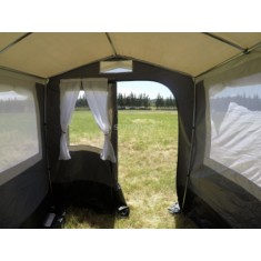 Tessuto in PVC resistente uno dei principali punti di forza del prodotto. Rinomato per la sua resistenza agli agenti atmosferici e agli strappi, offre una protezione efficace contro gli elementi, sia sotto la pioggia che alla luce diretta del sole. Oltre alla sua robustezza, questo tessuto è molto facile da mantenere, un vantaggio significativo per i campeggiatori che desiderano sfruttare al massimo le loro vacanze senza preoccuparsi della manutenzione dell'attrezzatura. Basta una semplice passata con una spugna per pulirlo, prolungandone la durata e garantendo un uso intensivo.