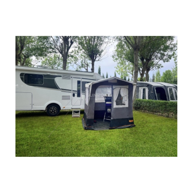 La pensilina da esterno Soplair Oasis è stata progettata per soddisfare le esigenze dei campeggiatori in cerca di comfort e praticità. Questo spazio aggiuntivo è ideale per creare una zona cucina o per riporre e proteggere in modo efficiente le sue attrezzature da campeggio. Il suo montaggio rapido e intuitivo la rende la scelta perfetta per i viaggiatori che non vogliono perdere tempo a sistemare le loro attrezzature. Con il suo robusto tessuto in PVC di facile manutenzione, questo rifugio non è solo resistente ma anche adatto alle condizioni esterne.
