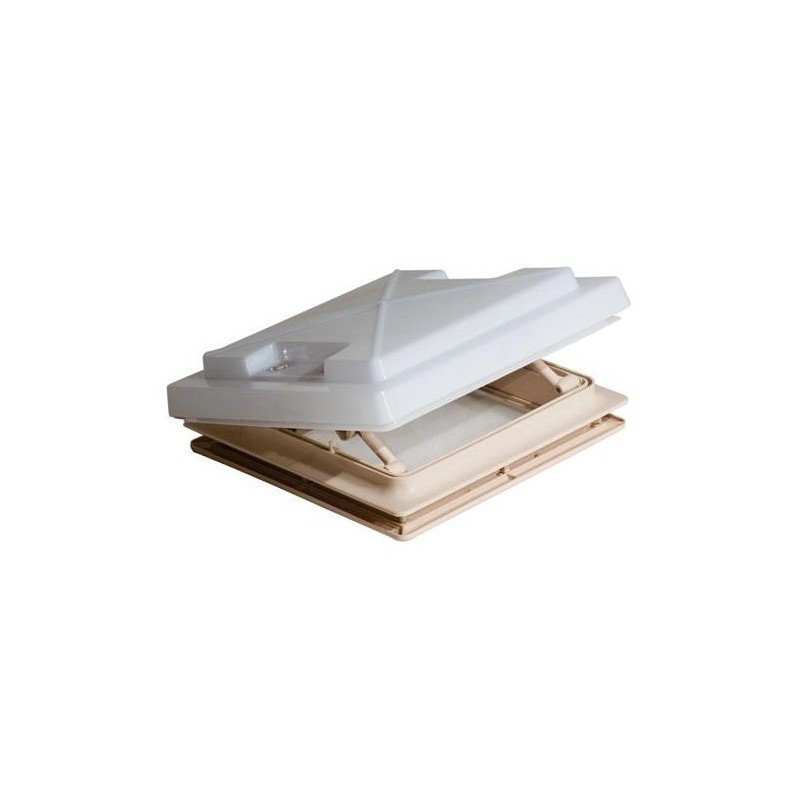 Lasciate entrare più luce nel vostro caravan o camper. Include una zanzariera rimovibile. In tessuto bianco con telaio in plastica di colore crema molto chiaro. Oblò opaco in doppio strato resistente con bracci di bloccaggio telescopici. Cinque modalità di apertura. Il doppio rivestimento consente all'aria di circolare liberamente anche con l'oblò chiuso. 400 x 400 mm