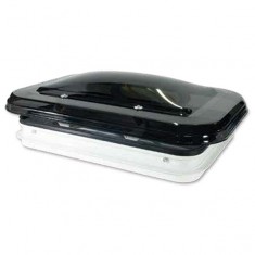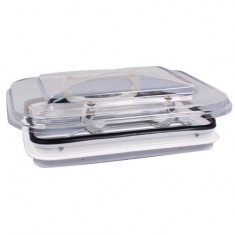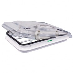 In materiale plastico, apribile a manovella con zanzariera incorporata e cupola doppia anticondensa