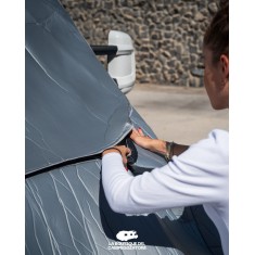 Realizzati con tessuto isolante da 6 mm di spessore. Con finitura in tessuto impermeabile grigio su entrambe i lati. Per chi volesse un isolamento maggiore, è possibile implementare gli oscuranti della cabina di guida con gli oscuranti per vano motore, basta congiungere le parti con il velcro e si otterrà un isolamento completo della cabina di guida, vano motore e portiere comprese. L’ideale per un isolamento totale!