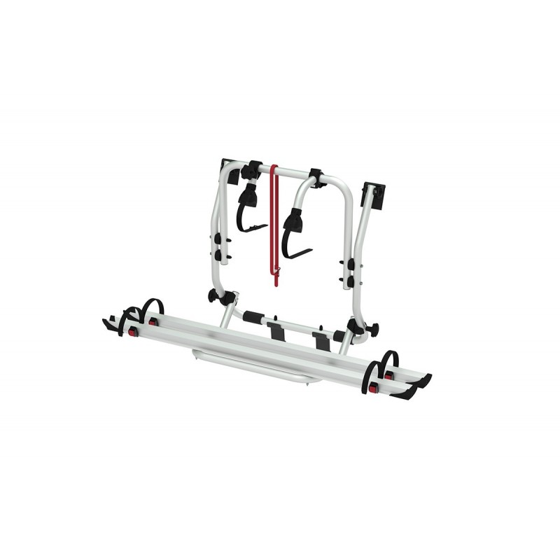 Questo modello di portabici si installa sul portellone destro lasciando libera la porta sinistra per l’eventuale montaggio di una scaletta Deluxe per accedere al tetto del veicolo.
