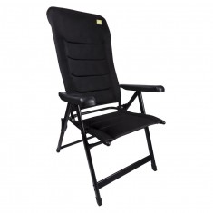 Confortevole sedia pieghevole con sostegno laterale della seduta. Grande stabilità grazie alla struttura in tubo ovale verniciata a polvere ed alle larghe basi regolabili dei piedi. Telo in robusto tessuto poliestere.