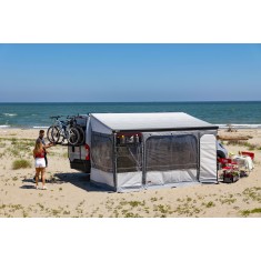 La versione standard della Privacy Room F80 300 della Fiamma è adatta ai tendalini con una lunghezza di 300 cm. Aggiungendo un pannello supplementare Front Panel è possibile estendere la parete frontale e renderla adatta a tutti i tendalini